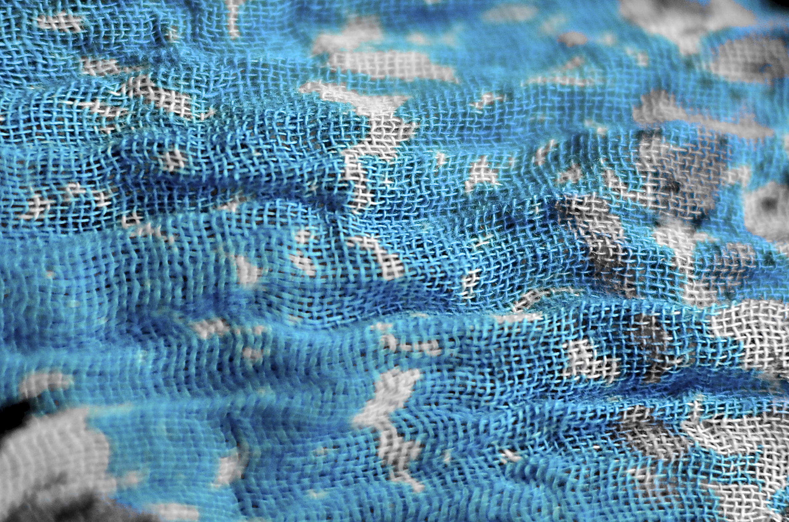 1. Nice shot. Love the very narrow depth of field. When I first saw this, I immediately thought of your photo that (I think…) Raj took with you holding the fabric over your nose and mouth. But upon closer examination of that shot I see that it’s a different fabric with what looks like metalic threads interwoven into it.
